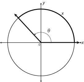 \begin{array}{cc}\text{Angle}&\text{Arc length}\\ \\2\pi &2\pi \\\theta &x\end{array}