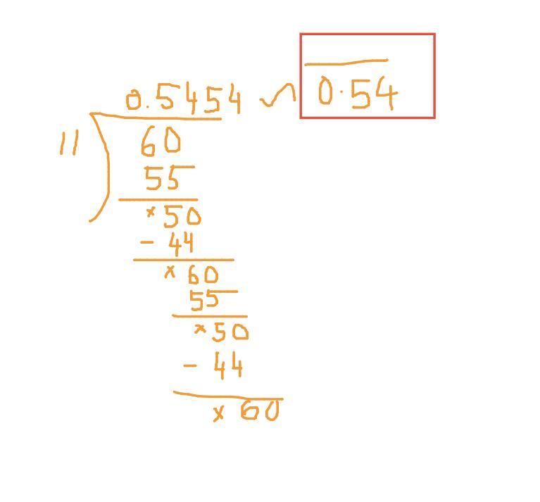 Teagan is dividing 6 by 11. If she continues the process, what will keep repeating in the quotient?