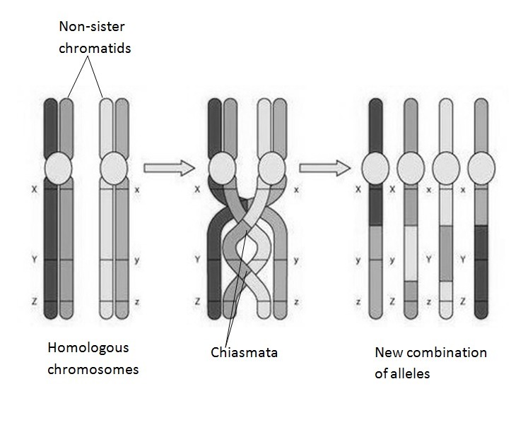 The most appropriate answer would be D) crossing over of homologous chromosomes during meiosis.