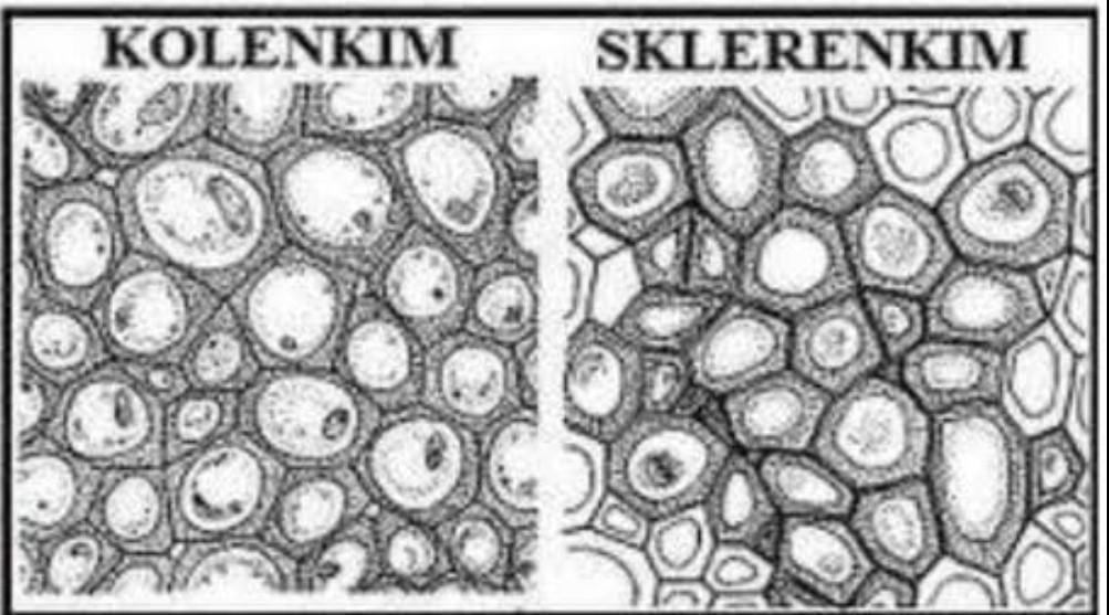 - <u>Collenchyma tissue consists of living cells in which the corner of the wall is thickened by cellulose.Collenchyma tissue is mainly found in plant organs that are still actively holding pertum</u>