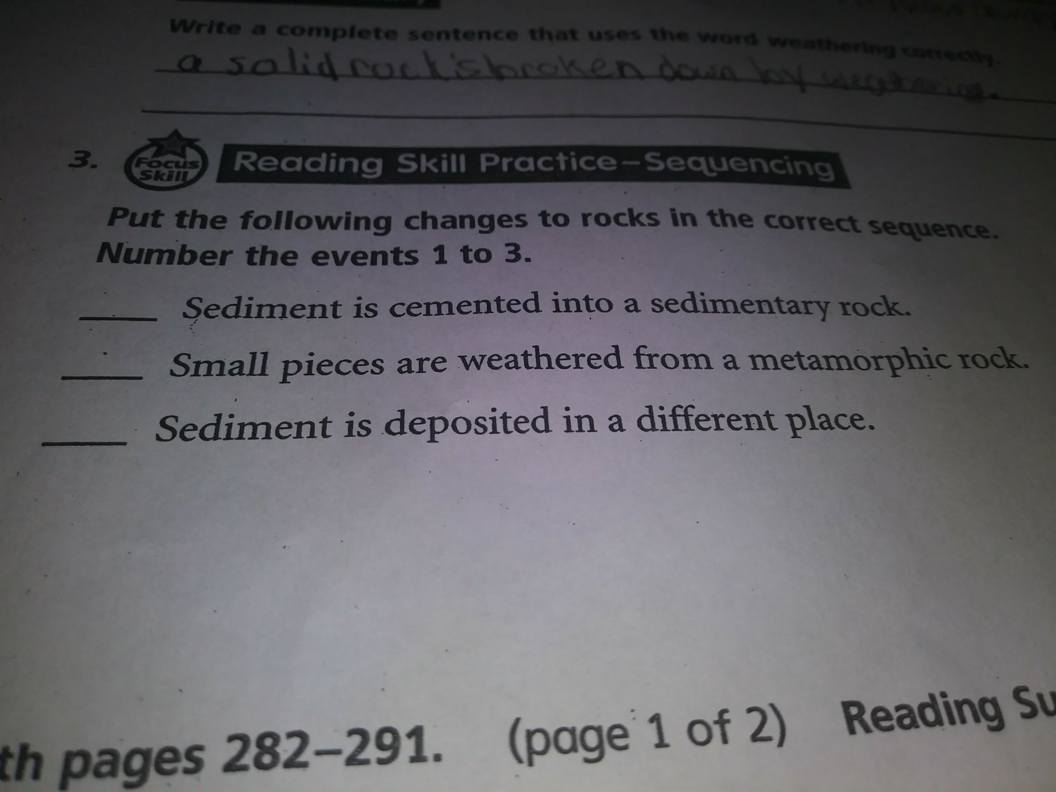 put the following changes to rock in the correct sequence. Sediment is cemented into a sedimentary rock. small piece are weather