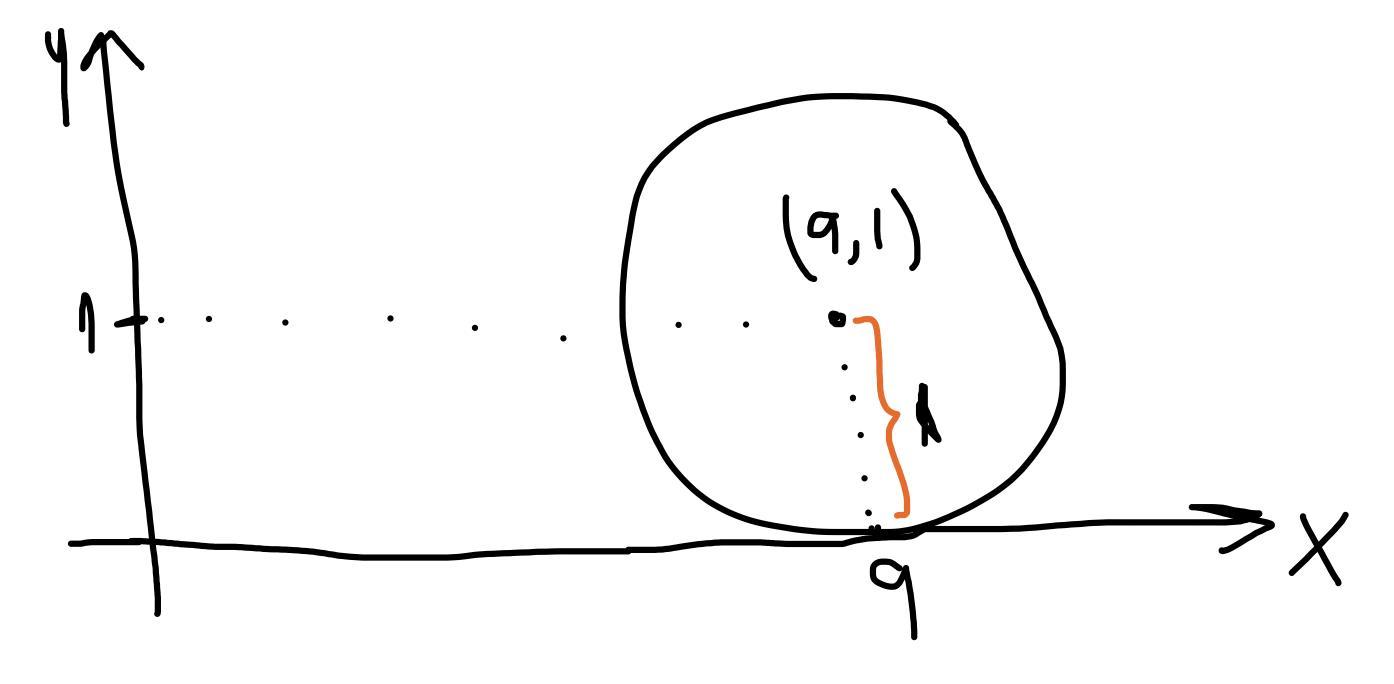 (x-9)²+(y-1)²=1², because the radius must be 1 since the circle needs to tangent to the x-axis