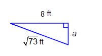 leg1 = 8 ft and hypotenuse = \sqrt{73} ft