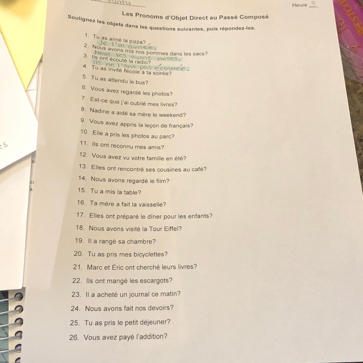 9. Vous avez appris LA LECON DE FRANCAIS ?