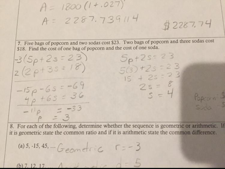 This is the answer key, not my work. For question 7, how do you get the -3 and 2 to multiply the equations by