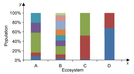 4. Ecosystem B has more biodiversity than ecosystems C and D but less biodiversity than ecosystem A.