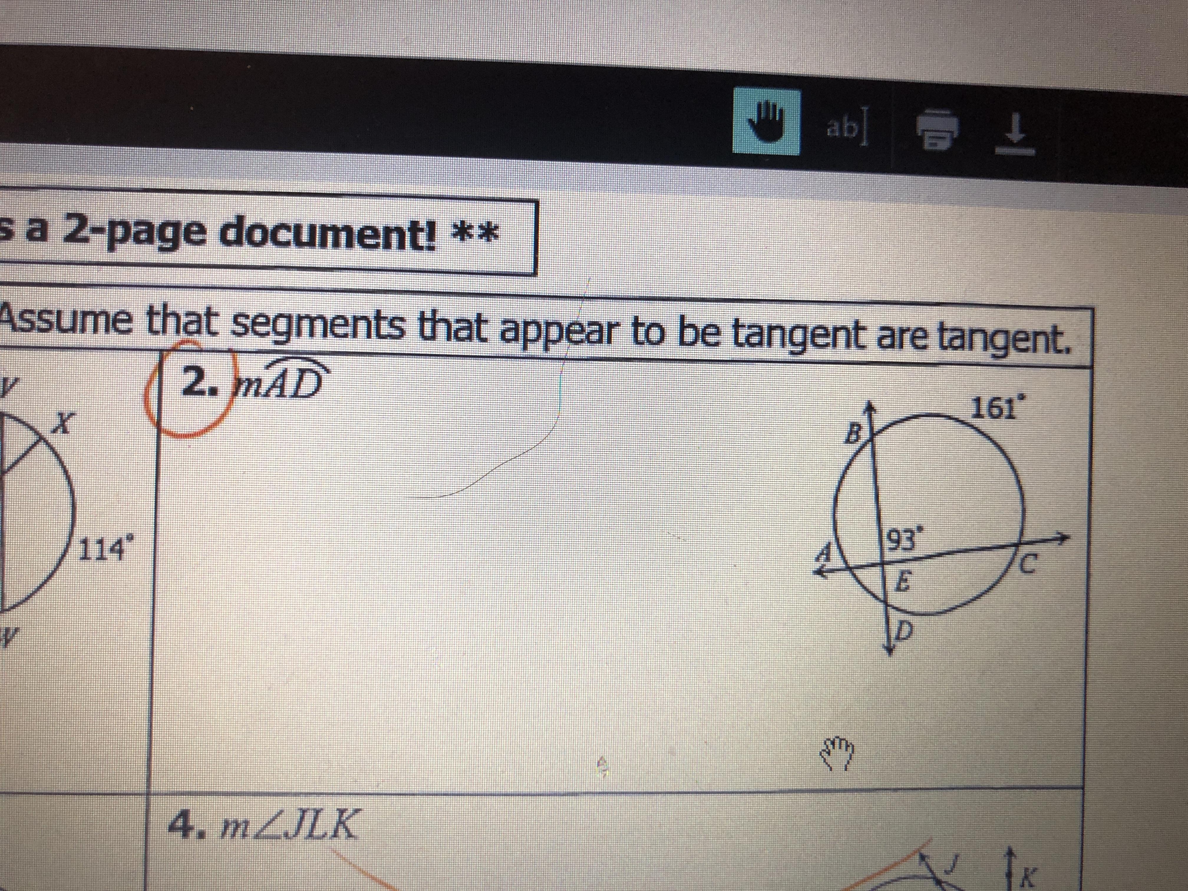 The measure of arc AD can be determined using the property that "if two chords intersect in the interior of the circle, then the measure of each angle is half the sum of the arcs intercepted by the angles and its vertical angle".