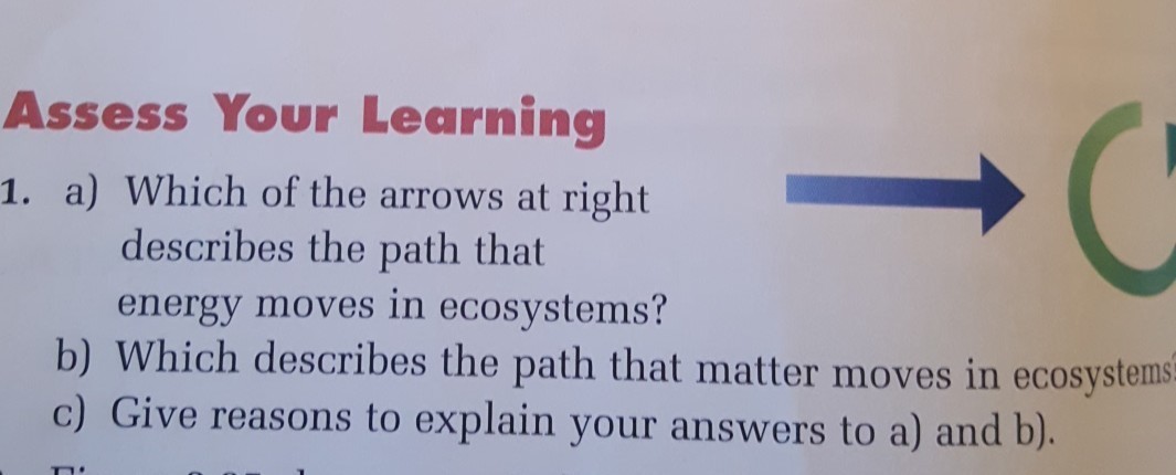 Which of the arrows at right describes the path that energy moves in an ecosystem?