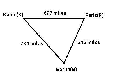 Let represent distance from Rome to Paris as a, distance from Paris to Berlin as b, and distance from Berlin to Rome as c.