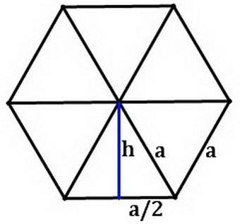 A hexagon consists of six equilateral triangles, each of side a, and we can divide each of them into two right triangles.