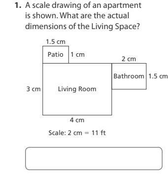 A scale drawing of an apartment is shown. What are the actual dimensions of the Living Space?