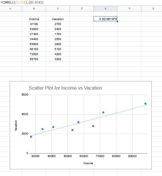 -let x be income, and y be vacation and divide all the values by 100 to make the smaller and easier to manipulate: