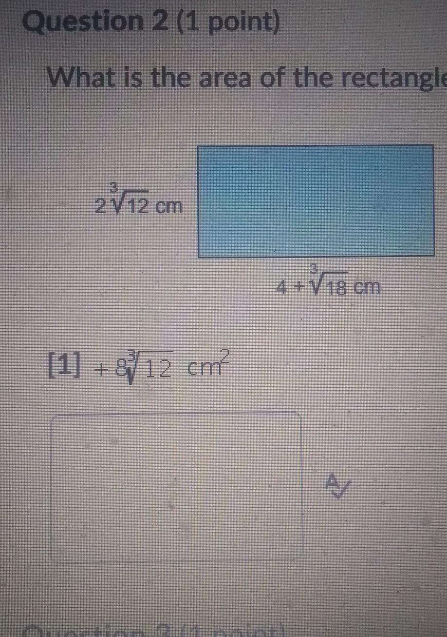 <u>The area of the rectangle is 8∛ 12 + 12 cm² or 30.32 cm²</u>