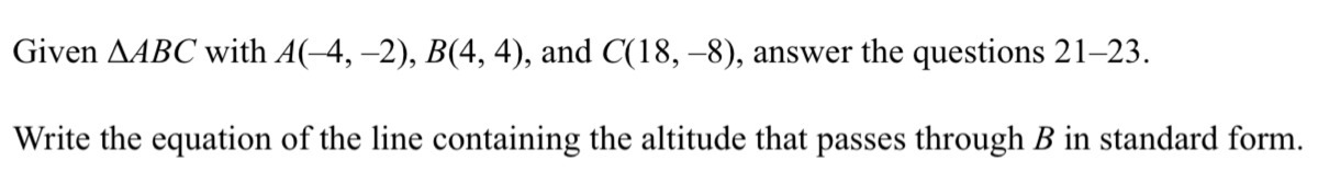 The given points are A = (-4,-2) B = (4,4) C = (18,-8)