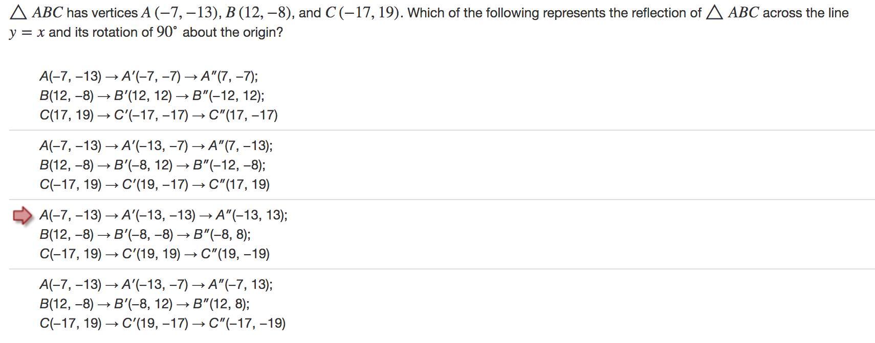 C(-17, 19) → C'(19, 17)  →C''(-17, 19)