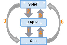 Arrow 6 represent the deposition process where gaseous state changes to solid state by escaping liquid state.
