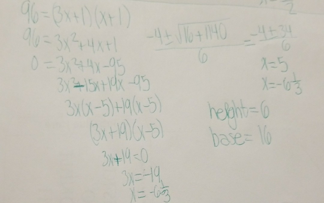 The height equals 6 and the base equals 16. I have also attached a picture for the work.