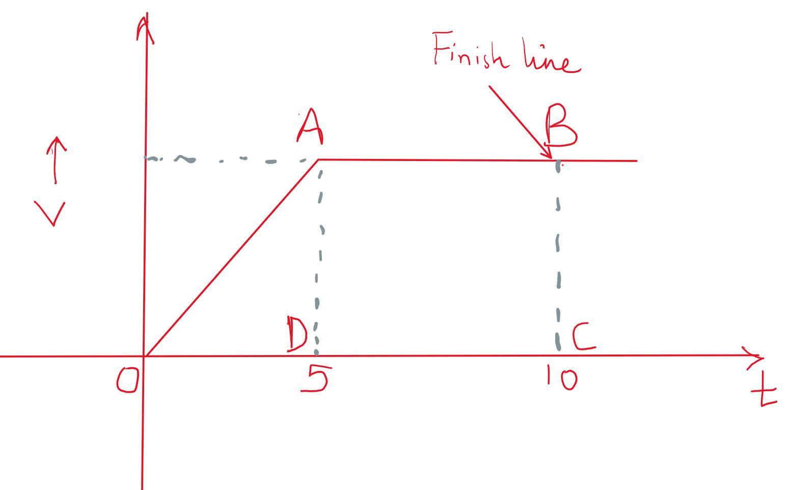 Therefore, the speed when crossing the finish line is the speed at B which is equal to 11 m/s.