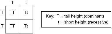 These gametes are written in the Punnett square which gives the offsprings TT, TT, Tt and Tt.