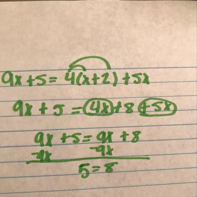 2(3x + 2) = 2x + 20