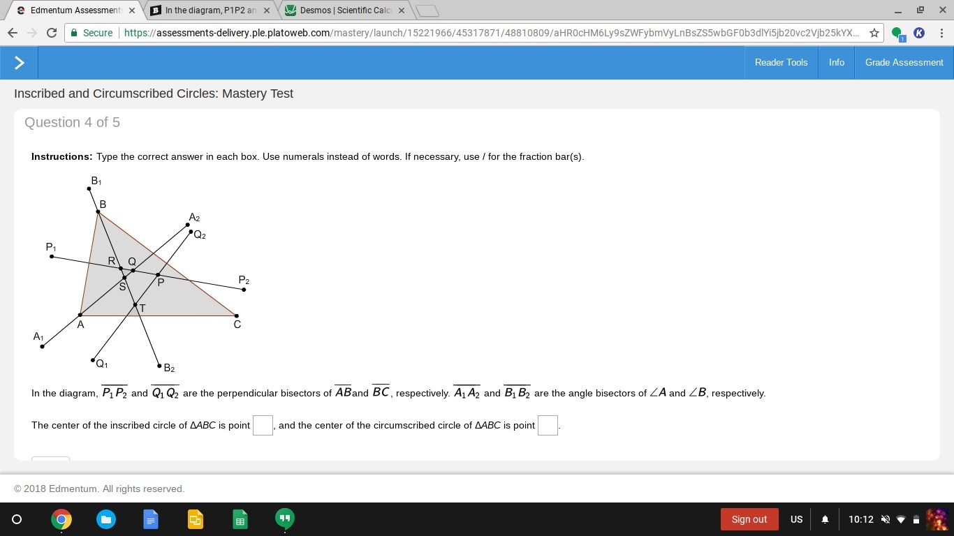 We are to find the centre of the inscribed circle of ΔABC and the centre of the circumscribed circle of ΔABC.