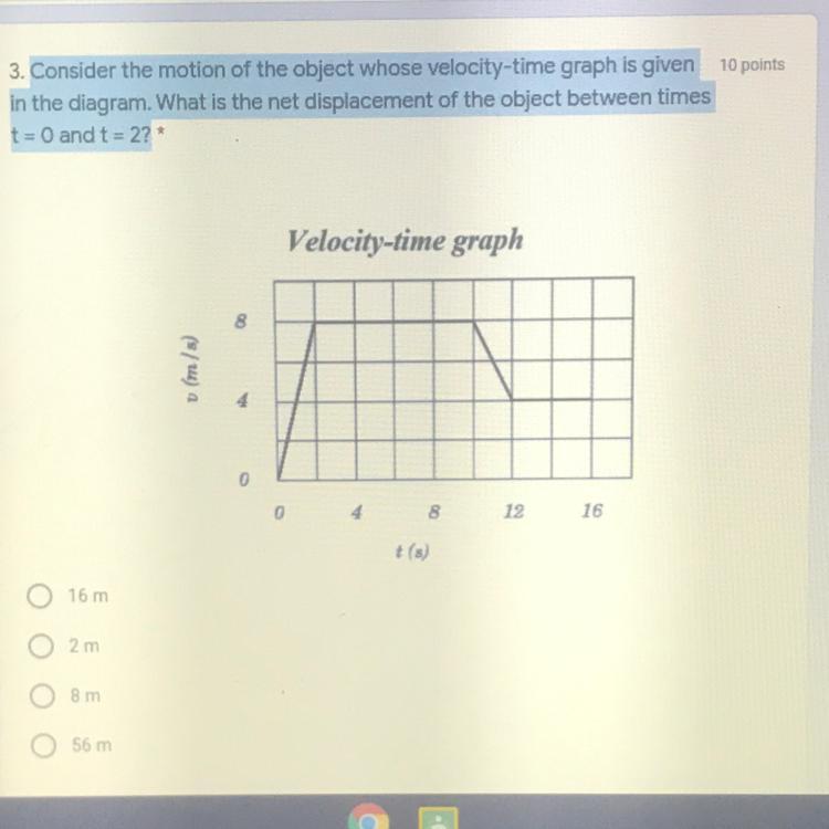 3. Consider the motion of the object whose velocity-time graph is given