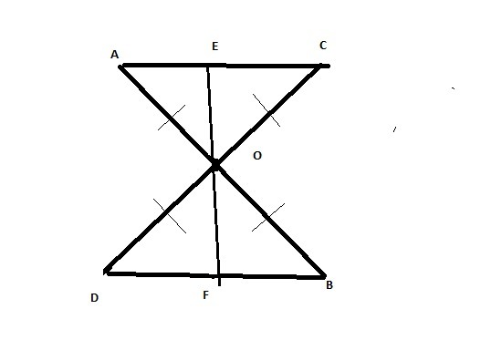 this shows points A, E, C and points B, F, D are lie in the single striaght line.