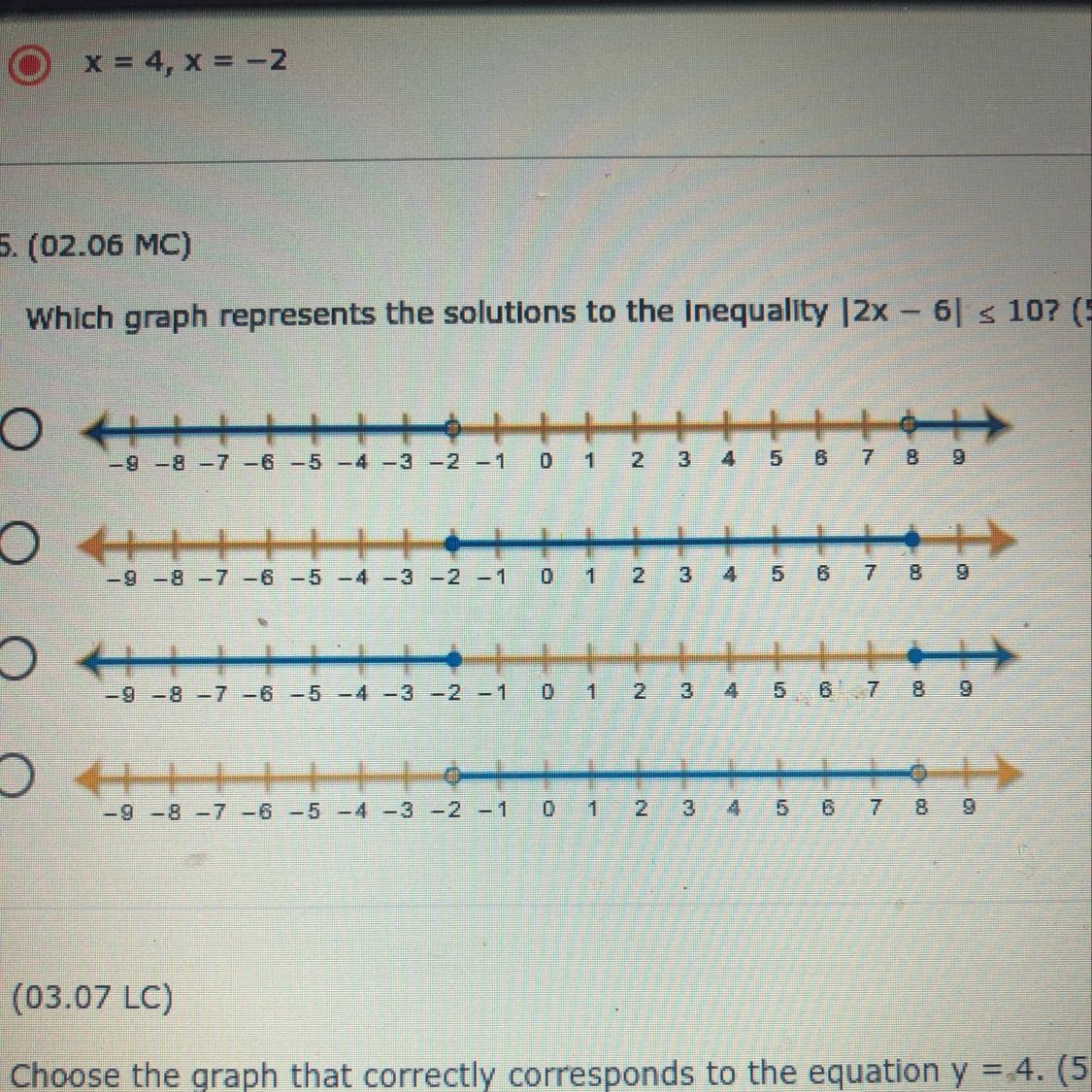 To do this you would take absolute value so you get then you would subtract 6 from both sides so you get then you would divide 2 from both sides so you would get so graph 3 would be the write answer