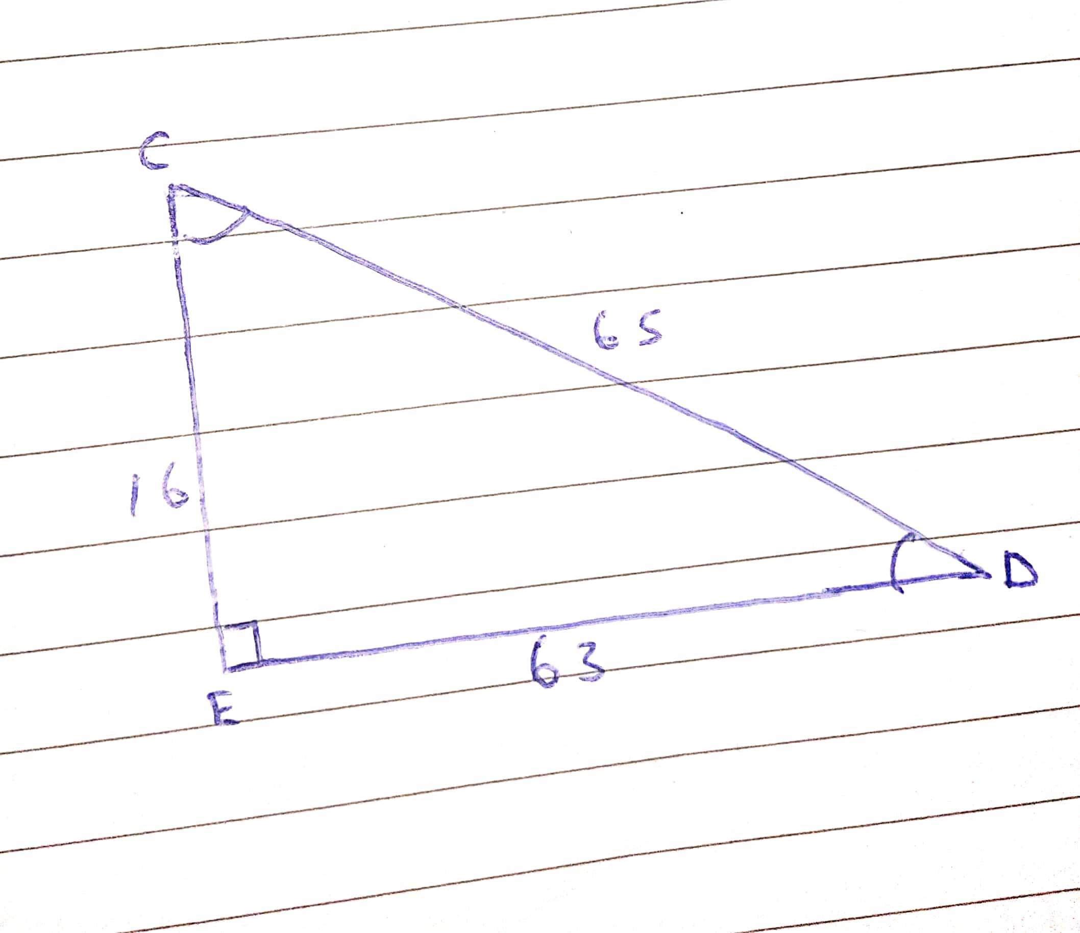 Since we are given CE = 16 and ED = 63, I have attached a diagram showing this triangle.