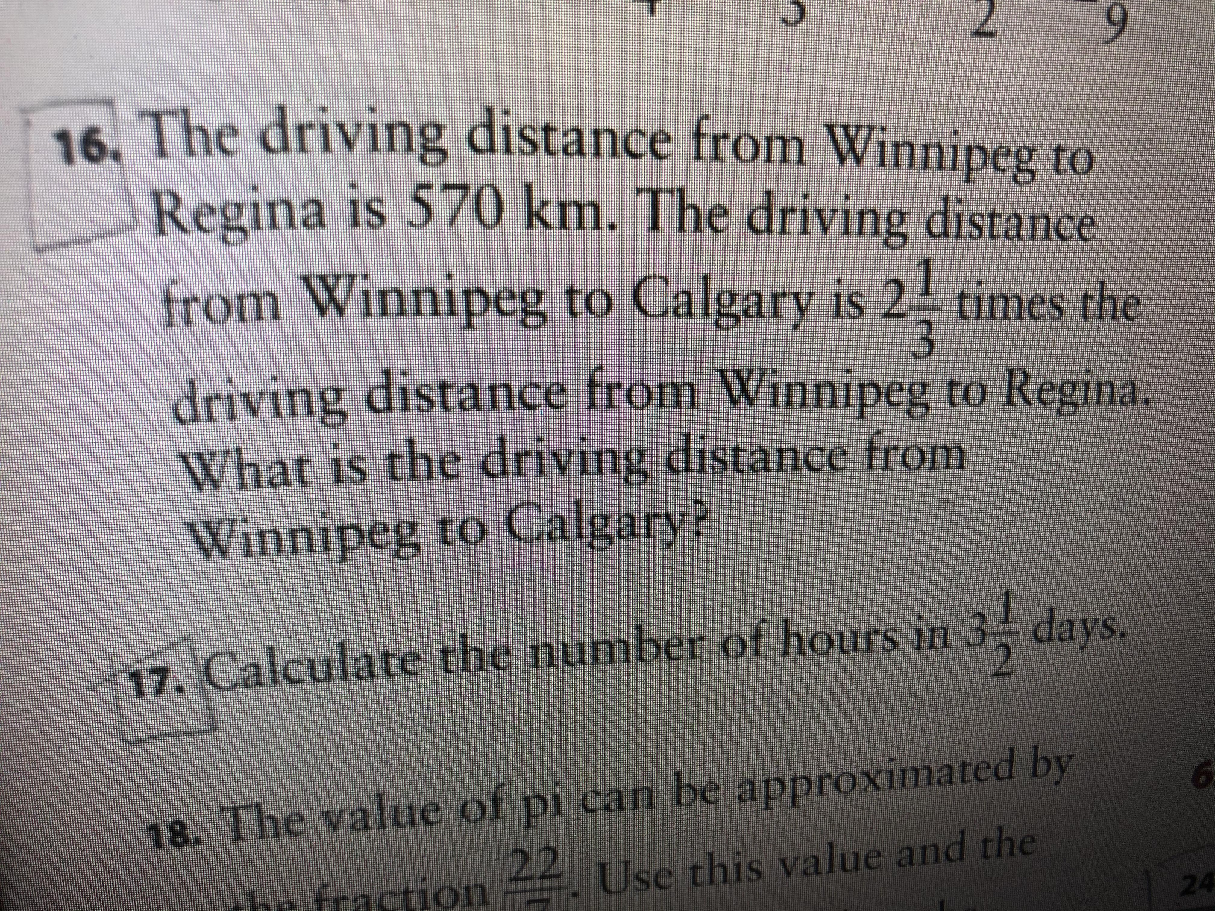 From Winnipeg to Calgary is 2 1/3 times WR, so WC = 2 1/3 * WR.