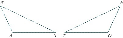 Since WA = NO and NO = OT, A and O are corresponding angles.