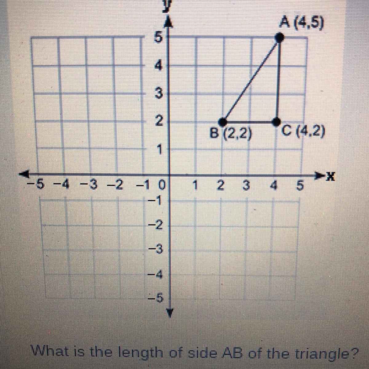 A ( 4, 5 ) , B ( 2 , 2 ) , C ( 4 , 2 )