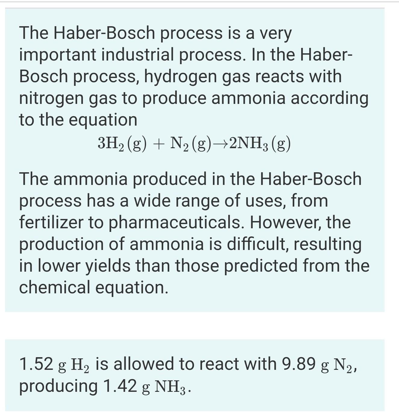 Mass of ammonia produced (Actual yield) = 1.42 g