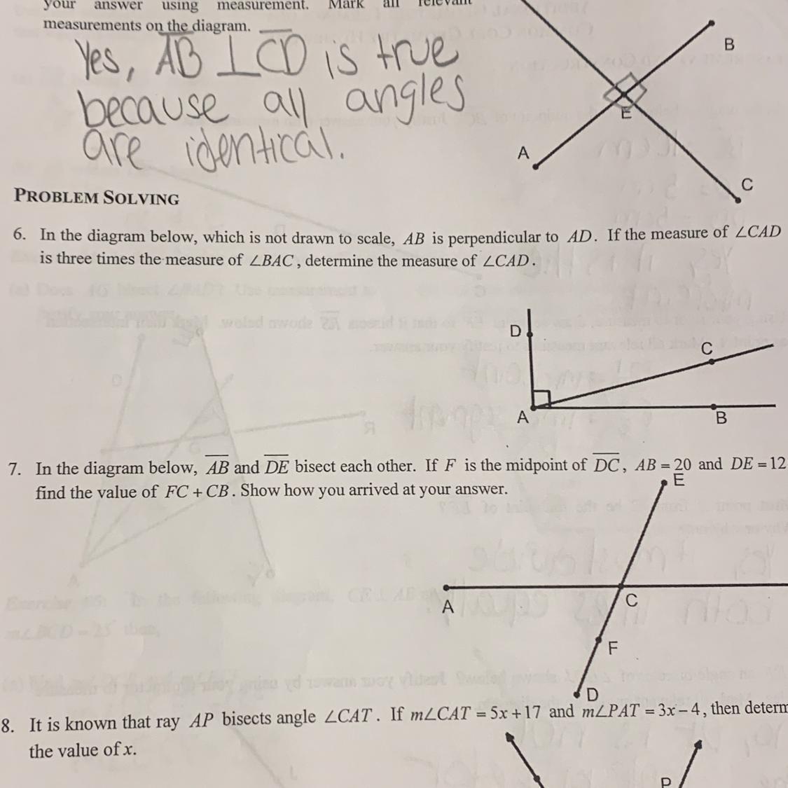 in the diagram below which is not drawn to scale a b is perpendicular to a d if the measurement of CAD is three times measuremen