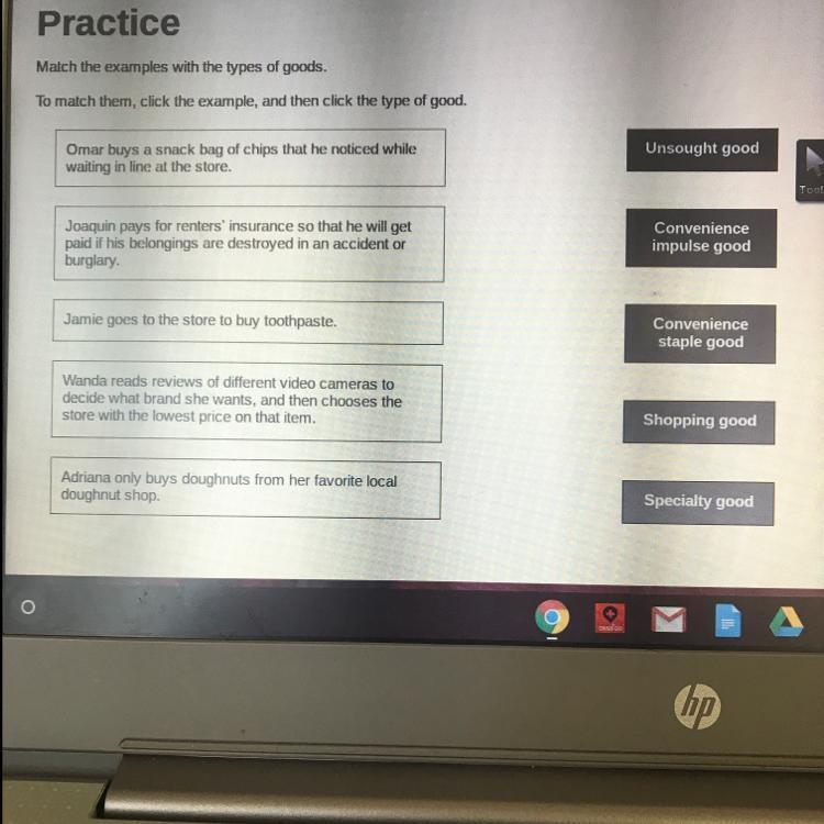 I have been able to match the examples with the type of goods.