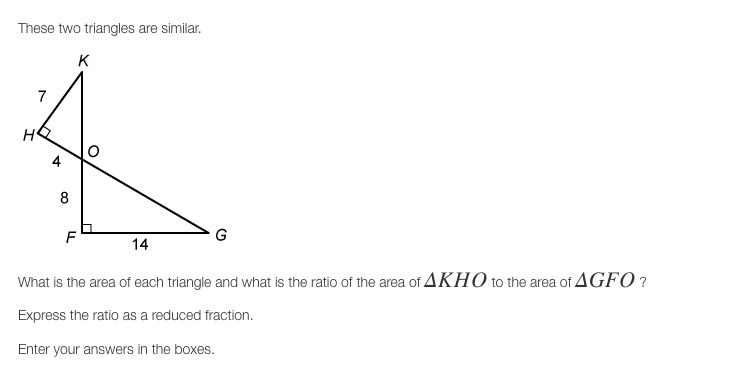Part 2) The ratio of the area of ΔKHO to the area of ΔGFO is