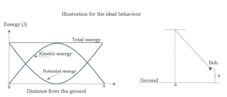- The bob is given some energy in the form of potential energy at the beginning and after it is released it swings back and forth interchanging energy between the potential to kinetic and keeping the total of its energy constant.