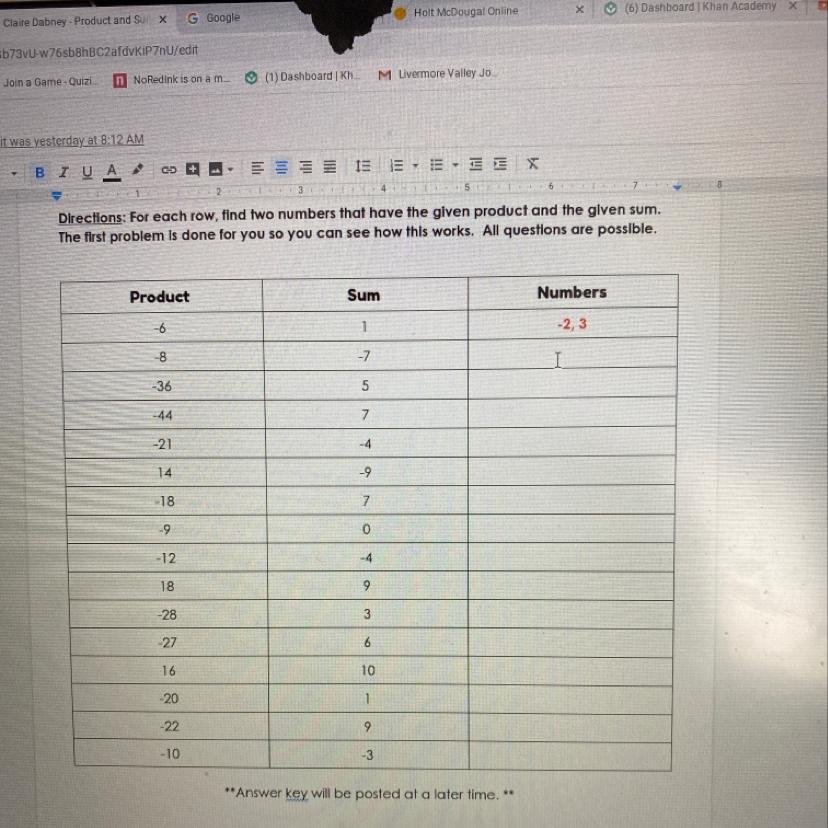 -8 and 1 are the numbers that multiply to get -8 and add to get -7