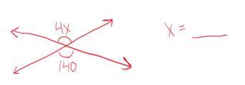 Step-by-step explanation: We know that these angles are congruent since they are vertical angles so we can set up the equation 140 = 4x.