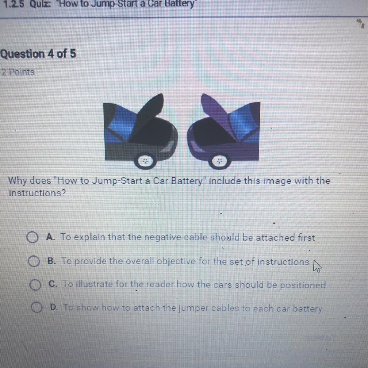 Explanation: to illustrate for the reader how the cars should be positioned