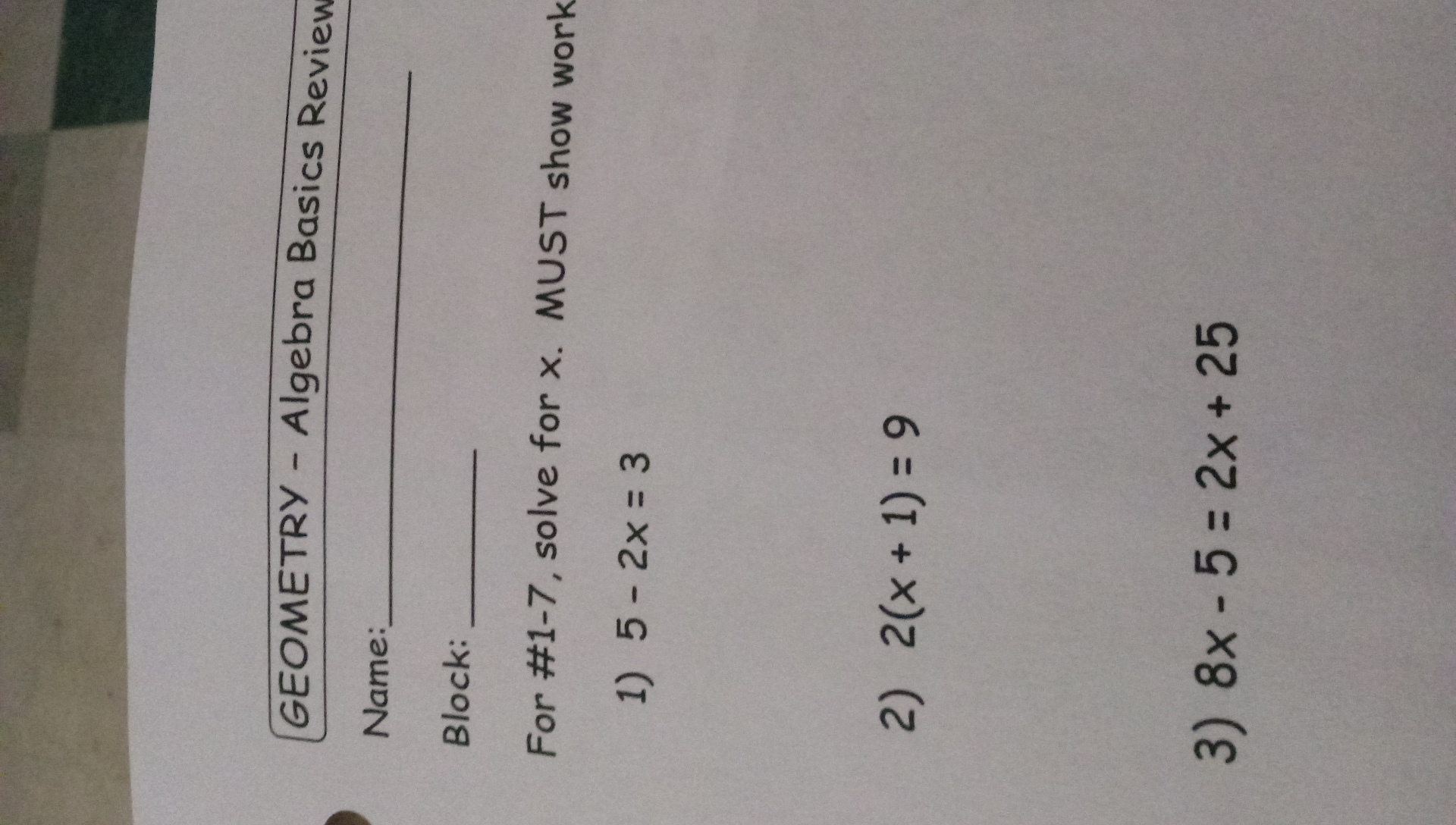 On number one: 5 - 2x = 3