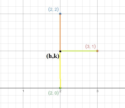 Likewise, if we take the points (3,1) and (2,0) which are equidistant from (h,k), we will get: