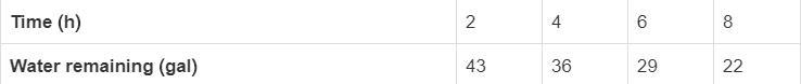 how much water, in gallons, remains at different times during the day. What is the equation that represents Yulian’s situation, where x represents the time and y represents the amount of water?