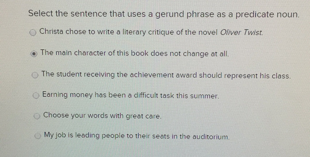 Answer: you can look for audio books online or something and also check online to see if they have answers. they usually do and a helped me. sorry i cant really help. Have a good day tho!