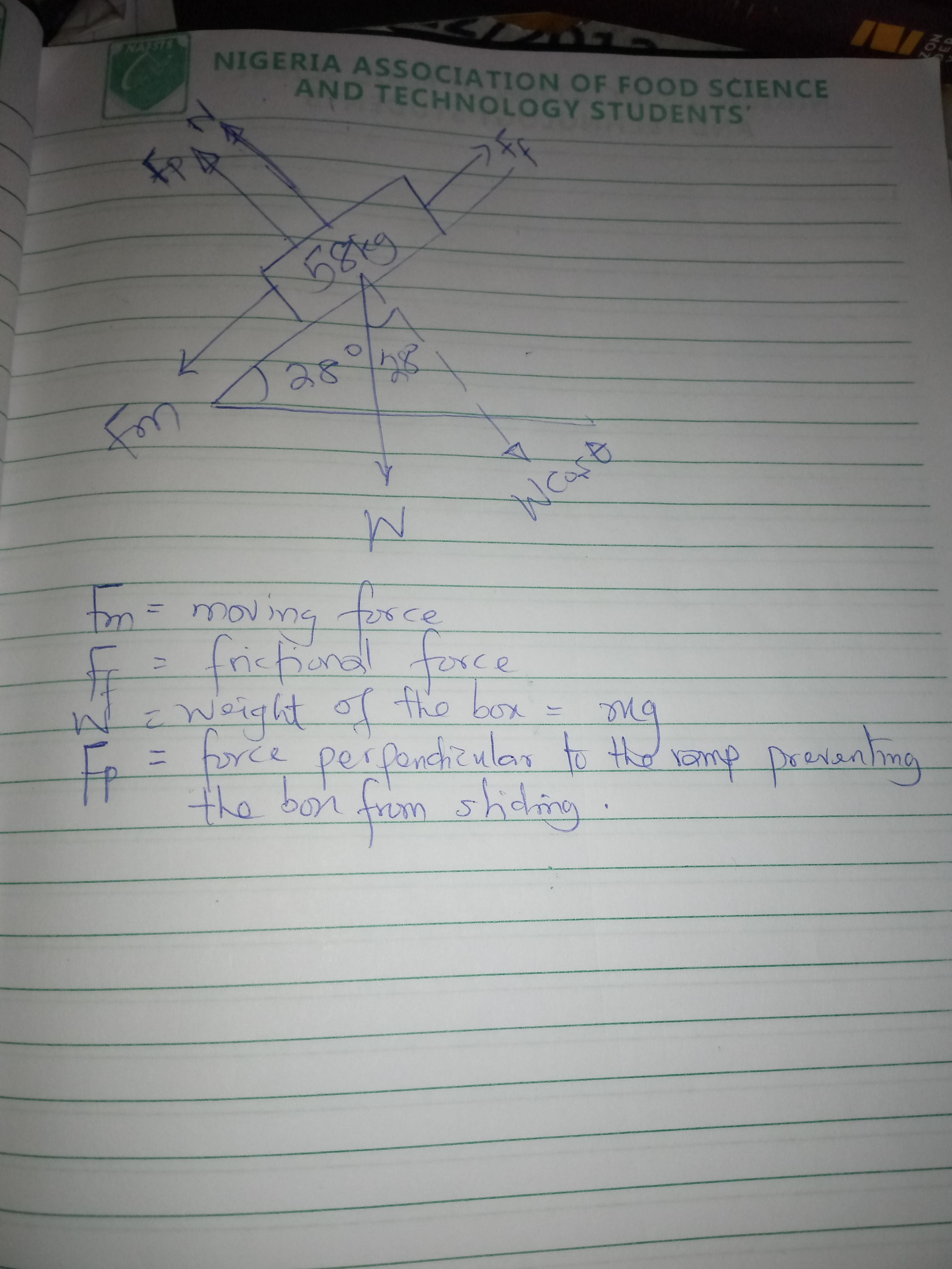 The forces acting on the box on the ramp is as shown in the attachment.