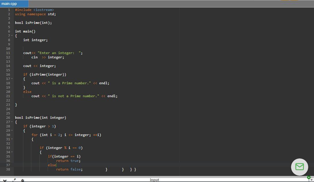 bool isPrime(int integer) //boolean function that takes integer argument //and returns true if argument is prime number otherwise false