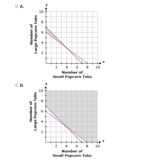 Lets x = # of small tub of popcorn and y = # of large tub of popcorn