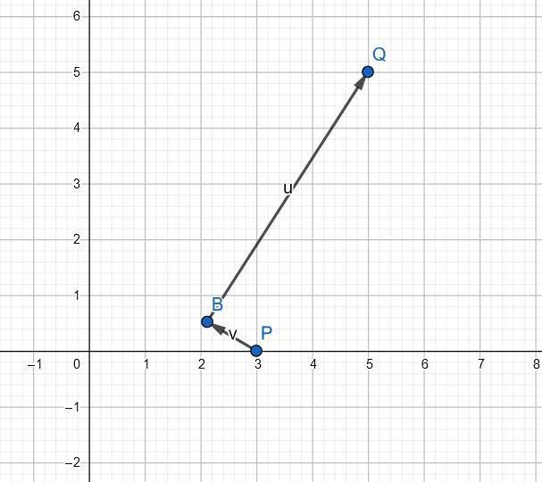 Note that vectors v and PB and vectors u and BQ are collinear, so