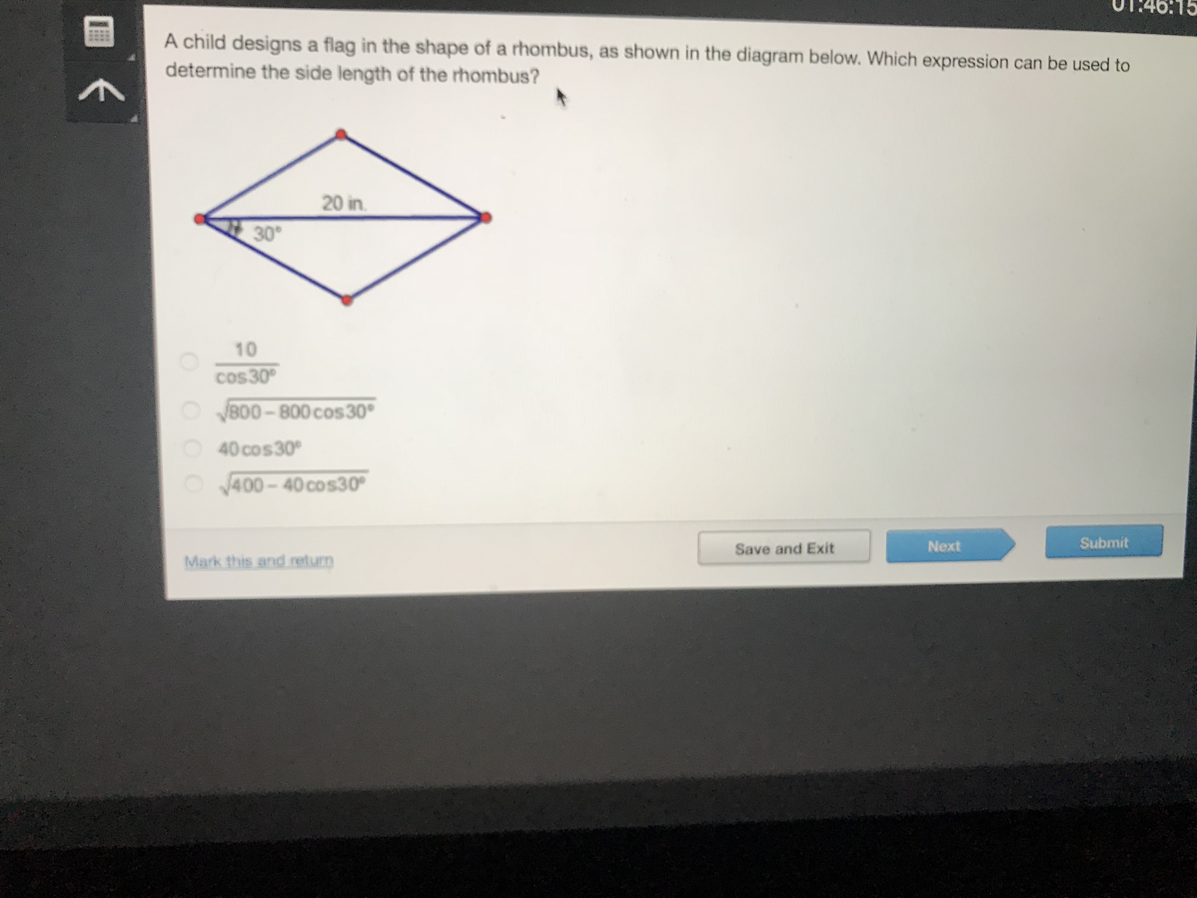 3. Therefore, you obtain the expression to determine the side length of the rhombus by clearing the hypotenuse "x", as below: