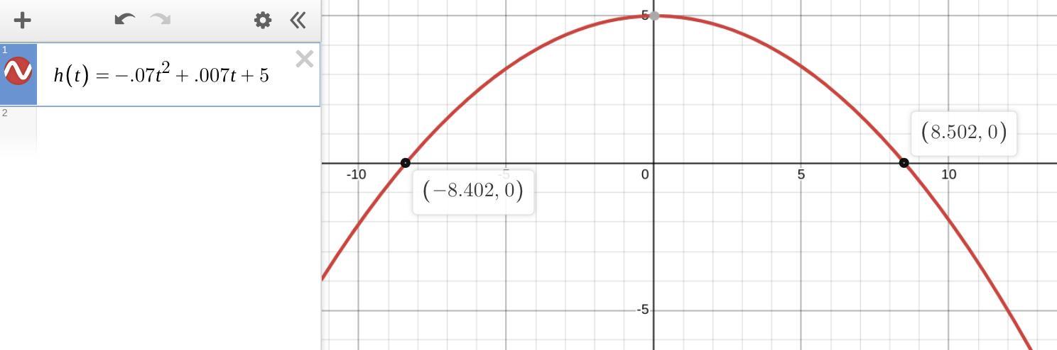 Your equation has the coefficients, a = -0.07, b = 0.007, c = 5, so the solutions are ...